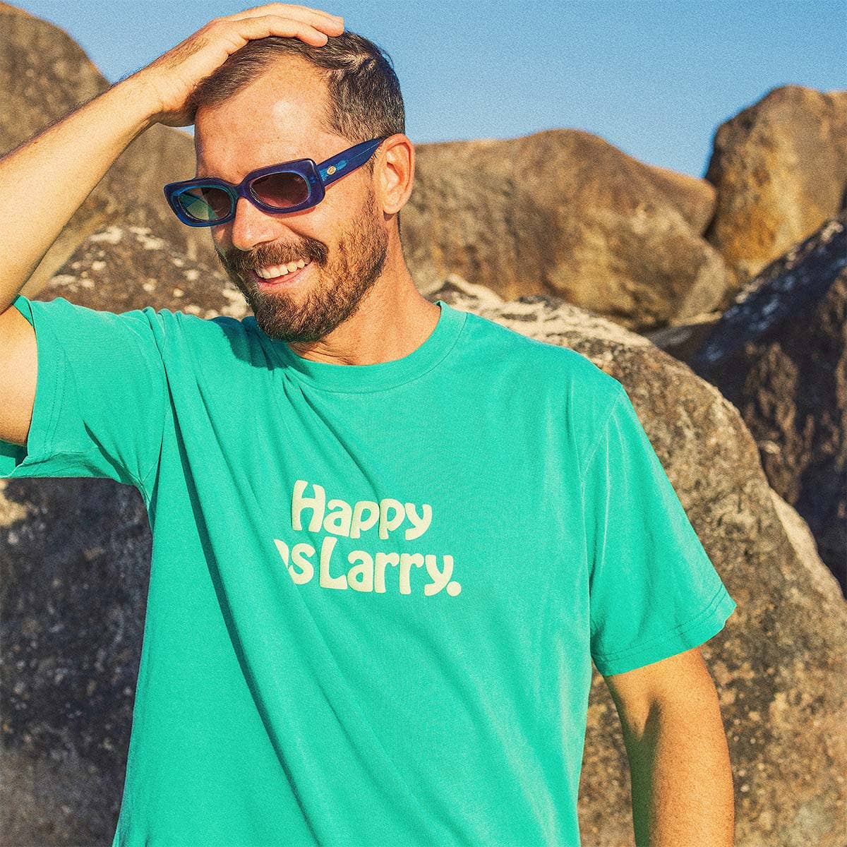 Larry is a real happy-go-lucky kind of fella, which is the way life is supposed to be! Golden sunsets, cold beer, and close mates. We're pretty chuffed with the Happy As Larry Regular Tee and we think you will be too. Get grinnin' ledge and whack this one in the cart.