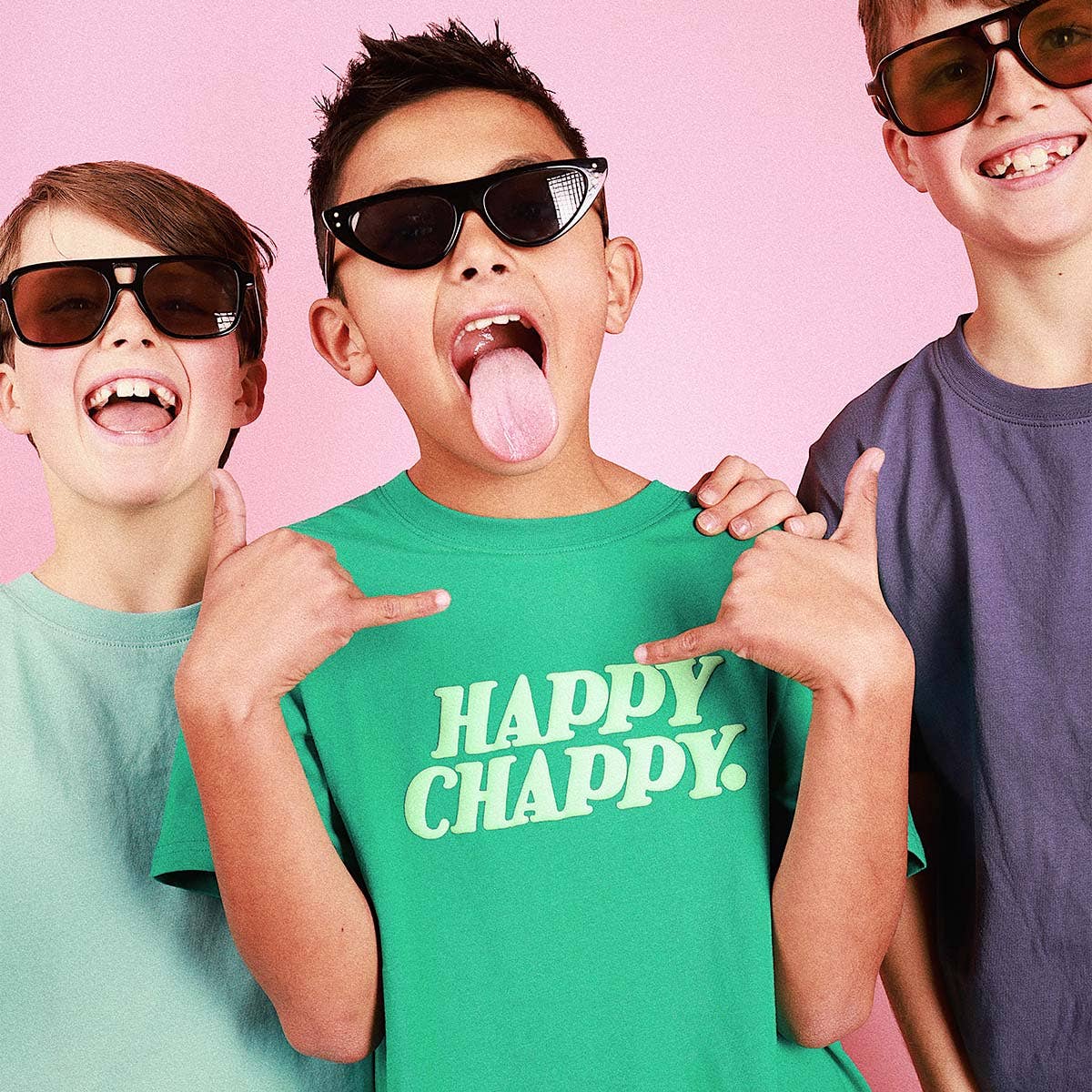 Feelin’ like a Happy Chappy? Your little legend will be in this tee. Big energy, soft feel, and built for all-day fun – just like your favourite little bloke.