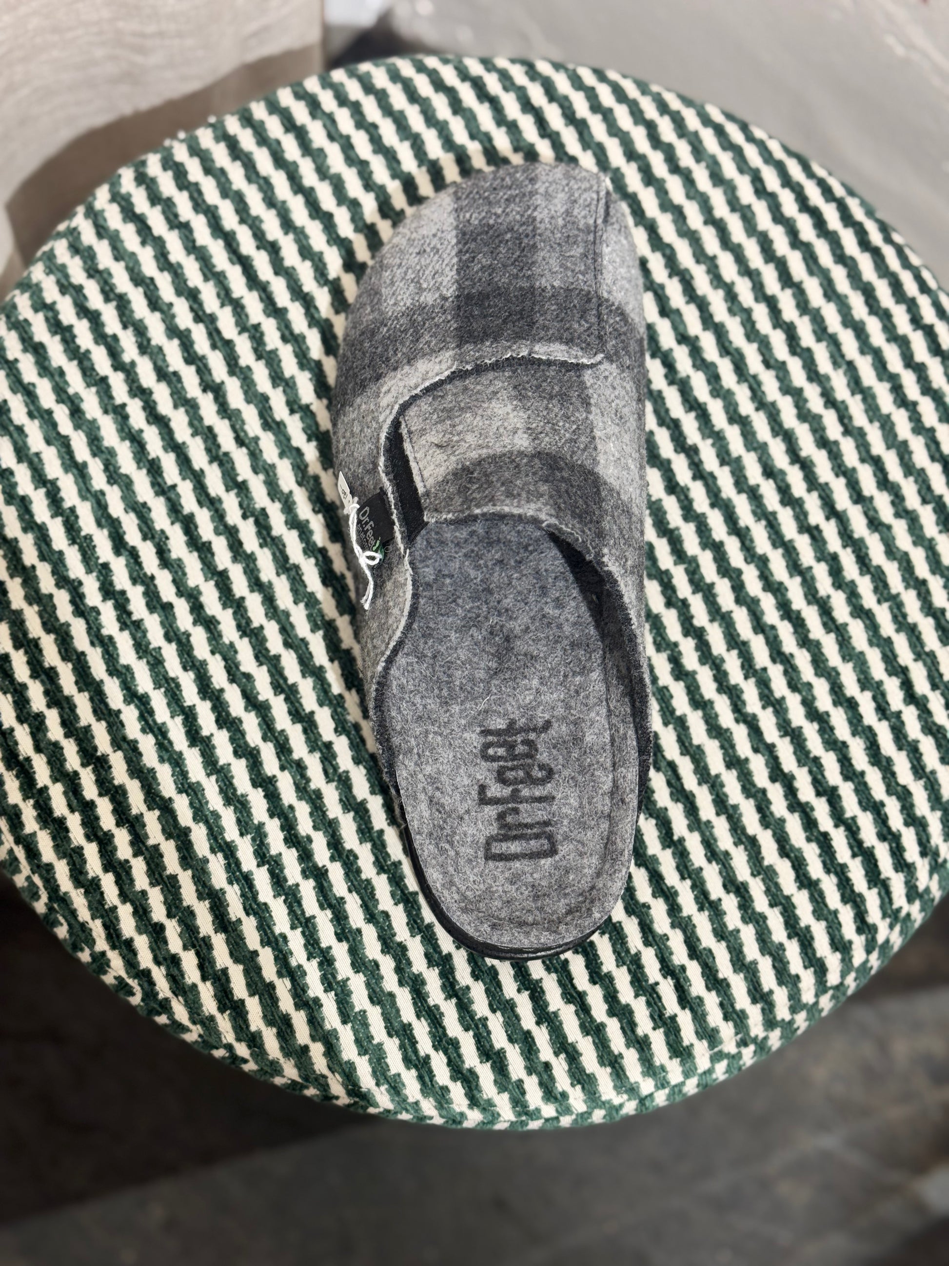 HEATH by DR FEET is a wool polyester unisex slipper, featuring a lightweight design with cushioning and support.