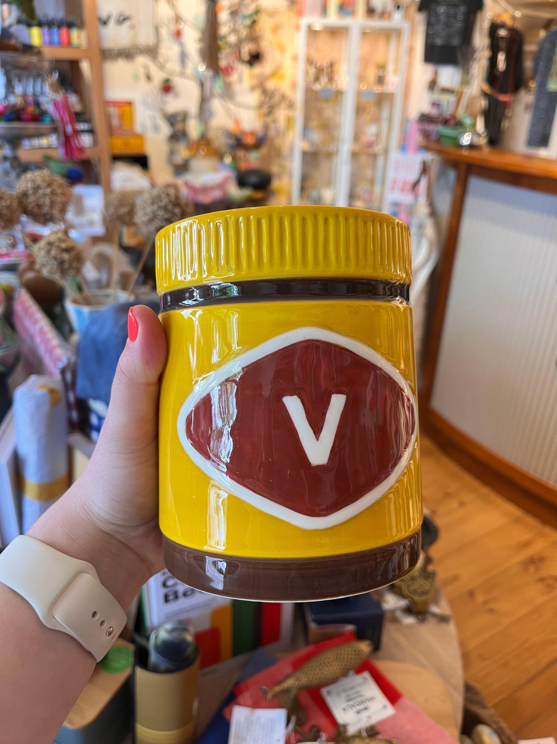 A mighty nod to an Aussie icon. This bold ceramic utensil holder brings a pop of nostalgia and colour to your kitchen bench, styled after a certain salty favourite we all grew up with. Handmade from durable ceramic and glazed in a rich combo of yellow, red and brown, it’s designed to look just like the real deal — minus the sticky fingers.