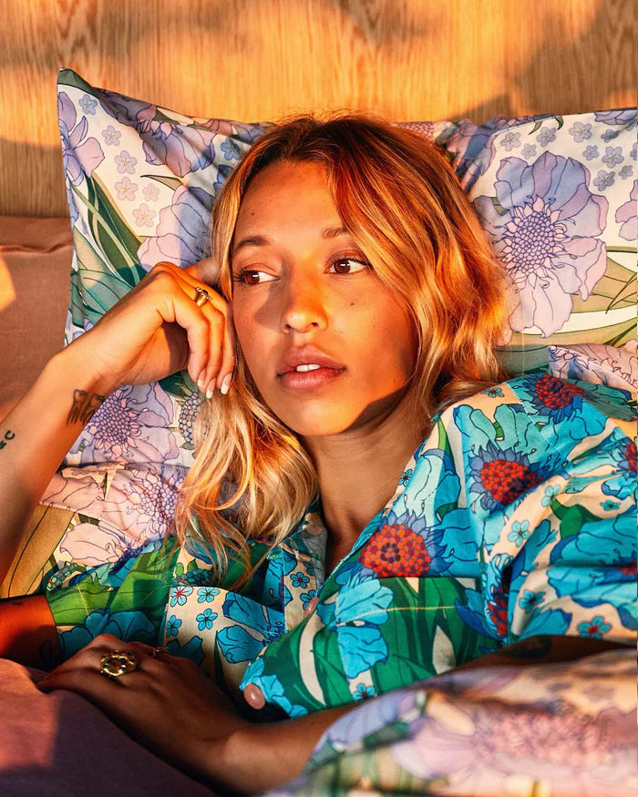 Wake up and unwind in our Aussie Bush Blossom Adult Organic Cotton Short Sleeve Shirt & Pant Pyjama Set. Lightweight, soft, and totally dream-worthy, this set is made for sprawling weekend mornings, sunlit reading nooks, or slow, blissful afternoons at home. The all-over gum leaves and blossoms in shades of rich pinks, reds, and creamy white add a pop of nature-inspired colour to your downtime, making relaxation look effortlessly stylish. Made from our lightweight 100% organic cotton voile.