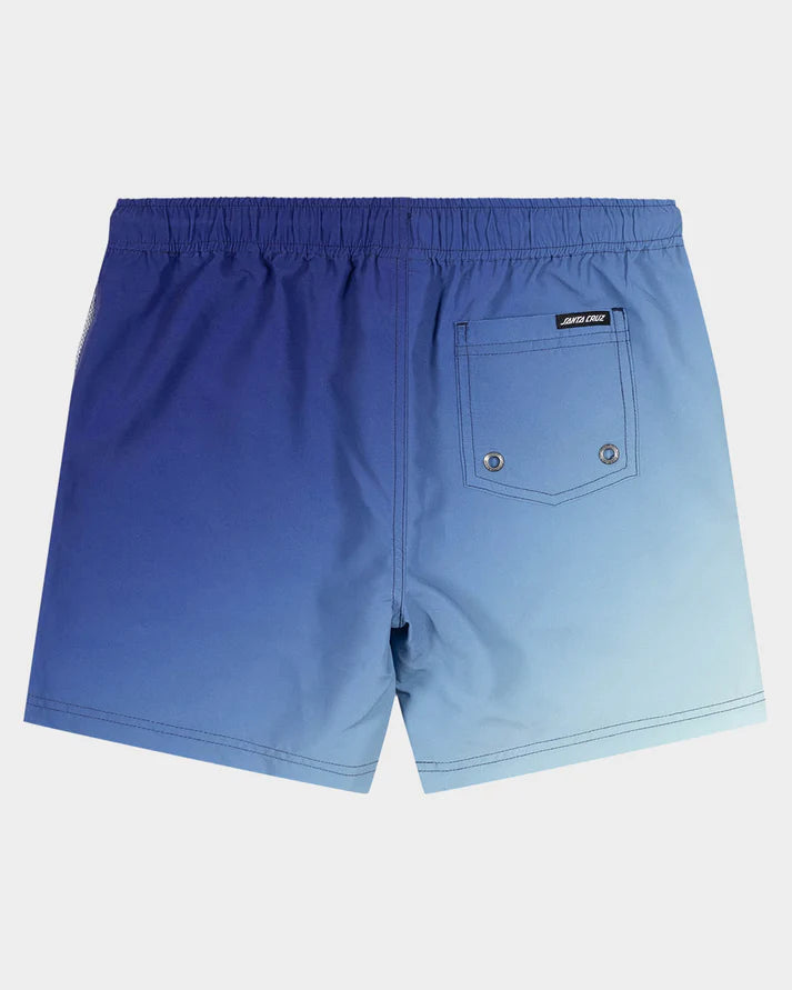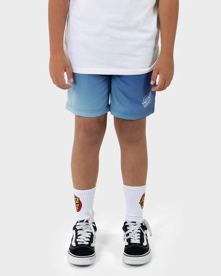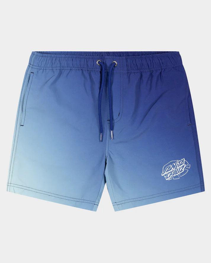 Boys Santa Cruz elastic waist tie dye beach shorts featuring screen print of the Universal Oval Dot artwork.